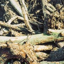 Wurzeln, befreit vom Erdreich, Stammholz bestehend aus Stämmen ab 20 cm Durchmesser.