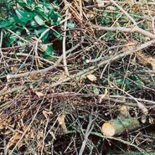 Baum- und Strauchschnitt mit einem Durchmesser von max. 20 cm, mit geringfügigen Anteilen von Laub und Gras etc. ohne Verunreinigungen wie z. B. Kunststoff, Steine, Folien etc.